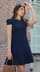Dark Navy Short Sleeve Pleated Drop Waist Shirtdress
