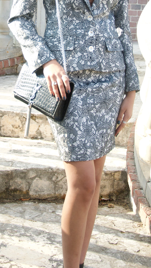 Gray Floral Print Pencil Mini Skirt - XS is backordered and will ship as soon as it is back in stock.