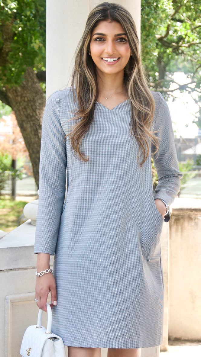 Gray Shepherd Check Long Sleeve Dress - XS is backordered and will ship as soon as it is back in stock.