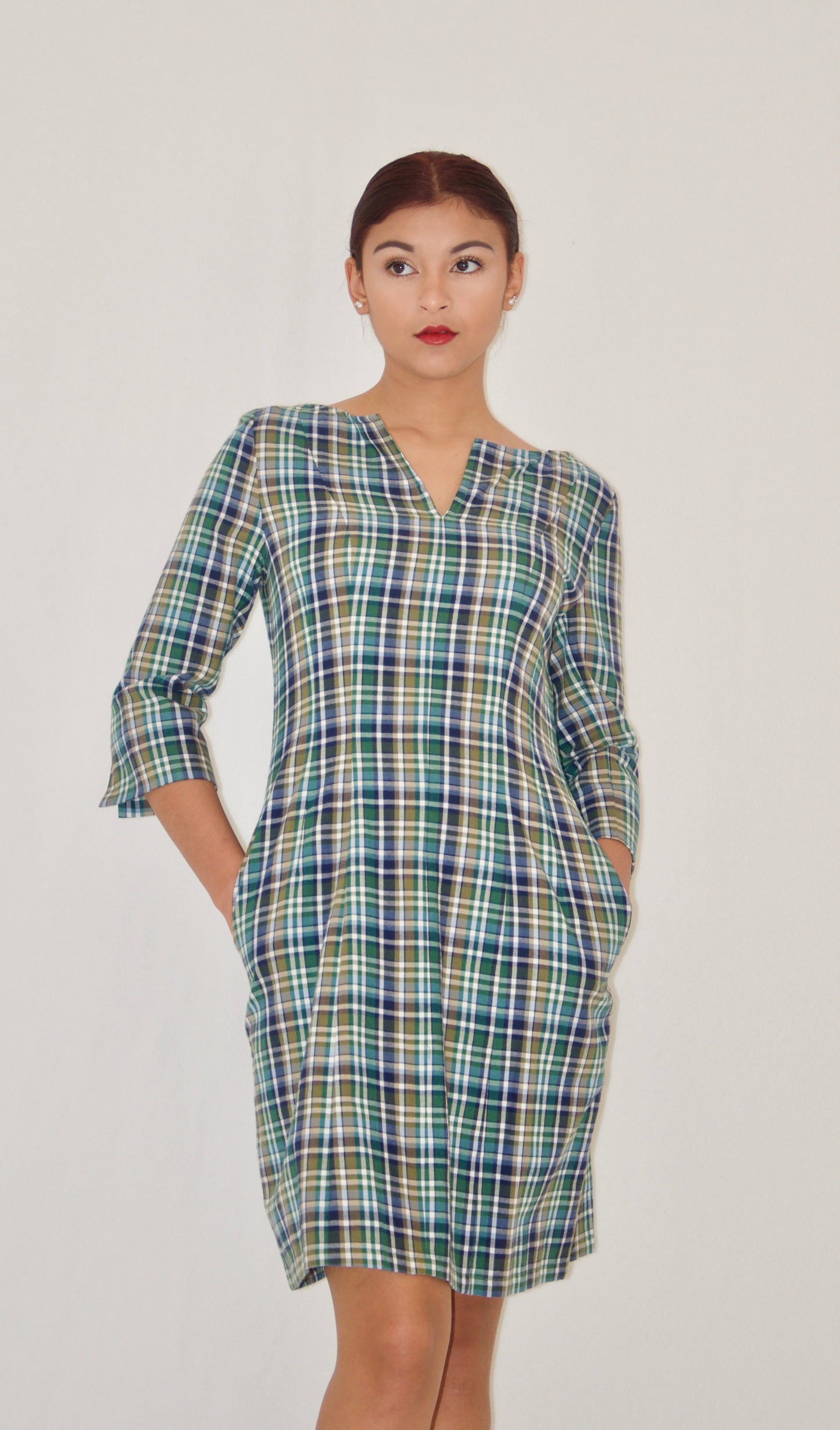 Green Plaid Cotton Dress - XS is backordered and will ship as soon as it is back in stock.