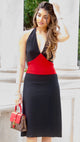 Black and Red Halter Tie-Waist Jersey Dress - XS is backordered and will ship as soon as it is back in stock.