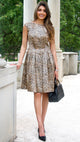 Leopard Print Satin Cap Sleeve Fit and Flare Dress