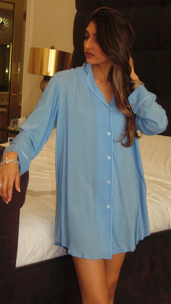 Light Blue Long Sleeve Nightshirt - XS is backordered and will ship as soon as it is back in stock.