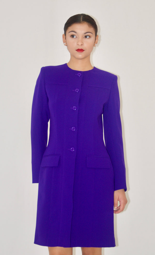 Purple Jewel Neckline Sheath Midi Coat Dress - XS is backordered and will ship as soon as it is back in stock.