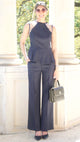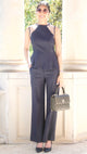 Navy Textured Wide Leg Trousers - XS is backordered and will ship as soon as it is back in stock.
