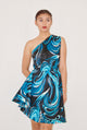 Blue Abstract Print One Shoulder Cocktail Dress - XS is backordered and will ship as soon as it is back in stock.