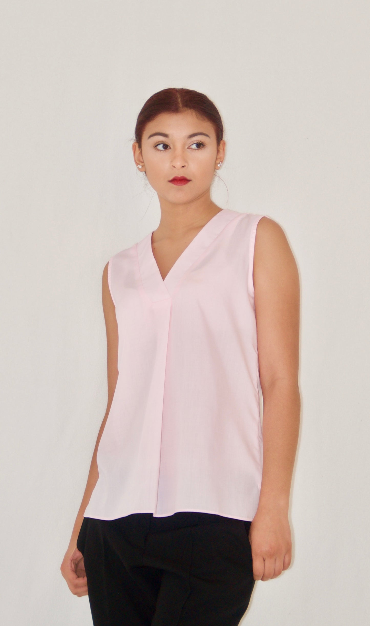 Pink Sleeveless Cotton Poplin Blouse