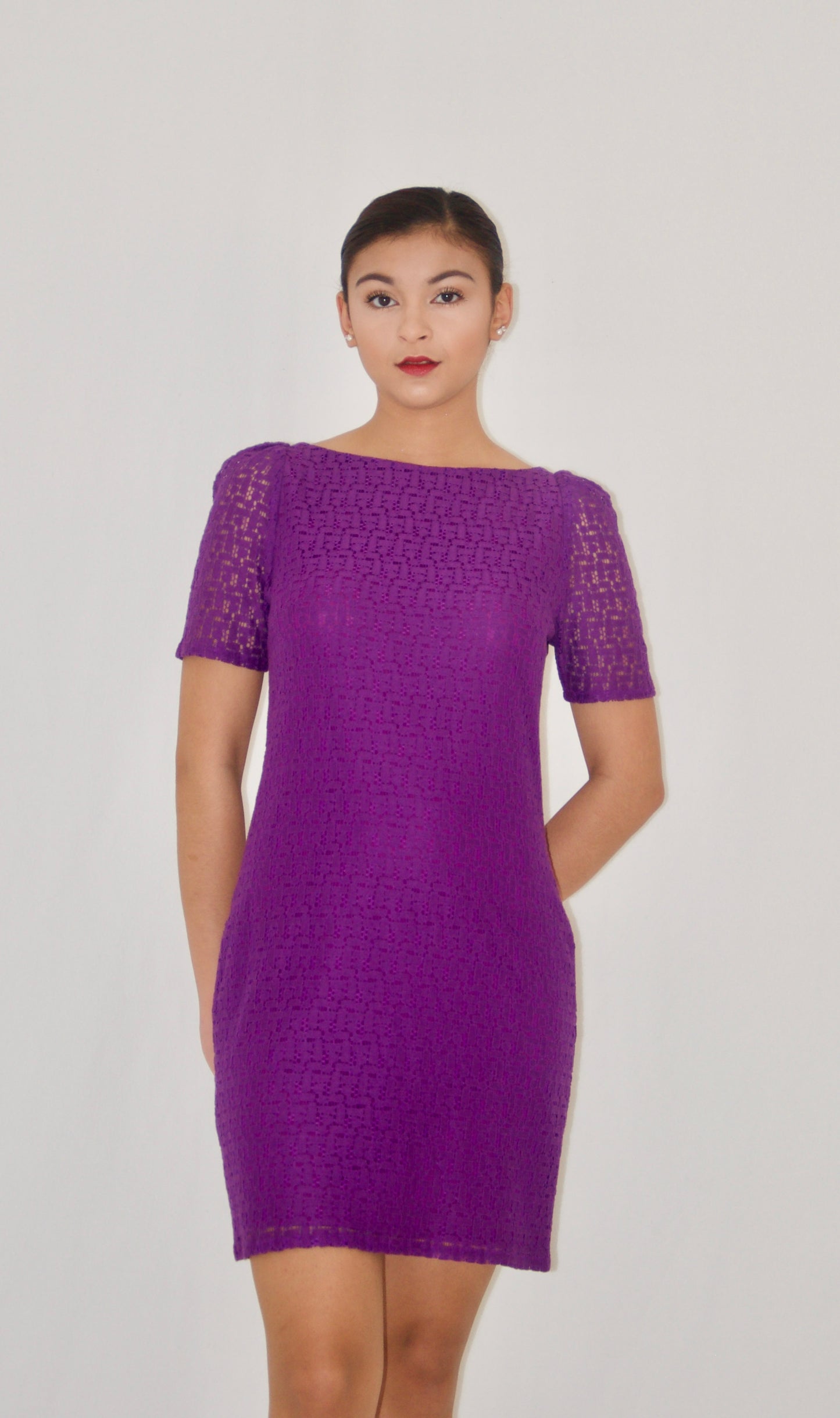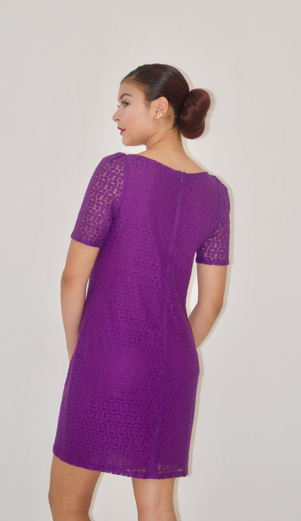 Purple Lace Sheath Mini Dress - XS is backordered and will ship as soon as it is back in stock.
