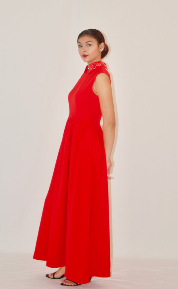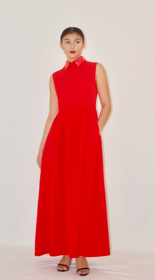 Red Sleeveless Shirtwaist Column Gown - XS is backordered and will ship as soon as it is back in stock.