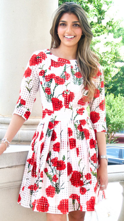 Red Gingham Rose Print Shirtwaist Dress - XS is backordered and will ship as soon as it is back in stock.