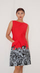 Red and Gray Print Cotton Poplin A-Line Dress - XS is backordered and will ship as soon as it is back in stock.