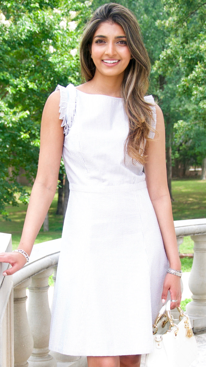 Gray Seersucker Cotton Dress - XS is backordered and will ship as soon as it is back in stock.