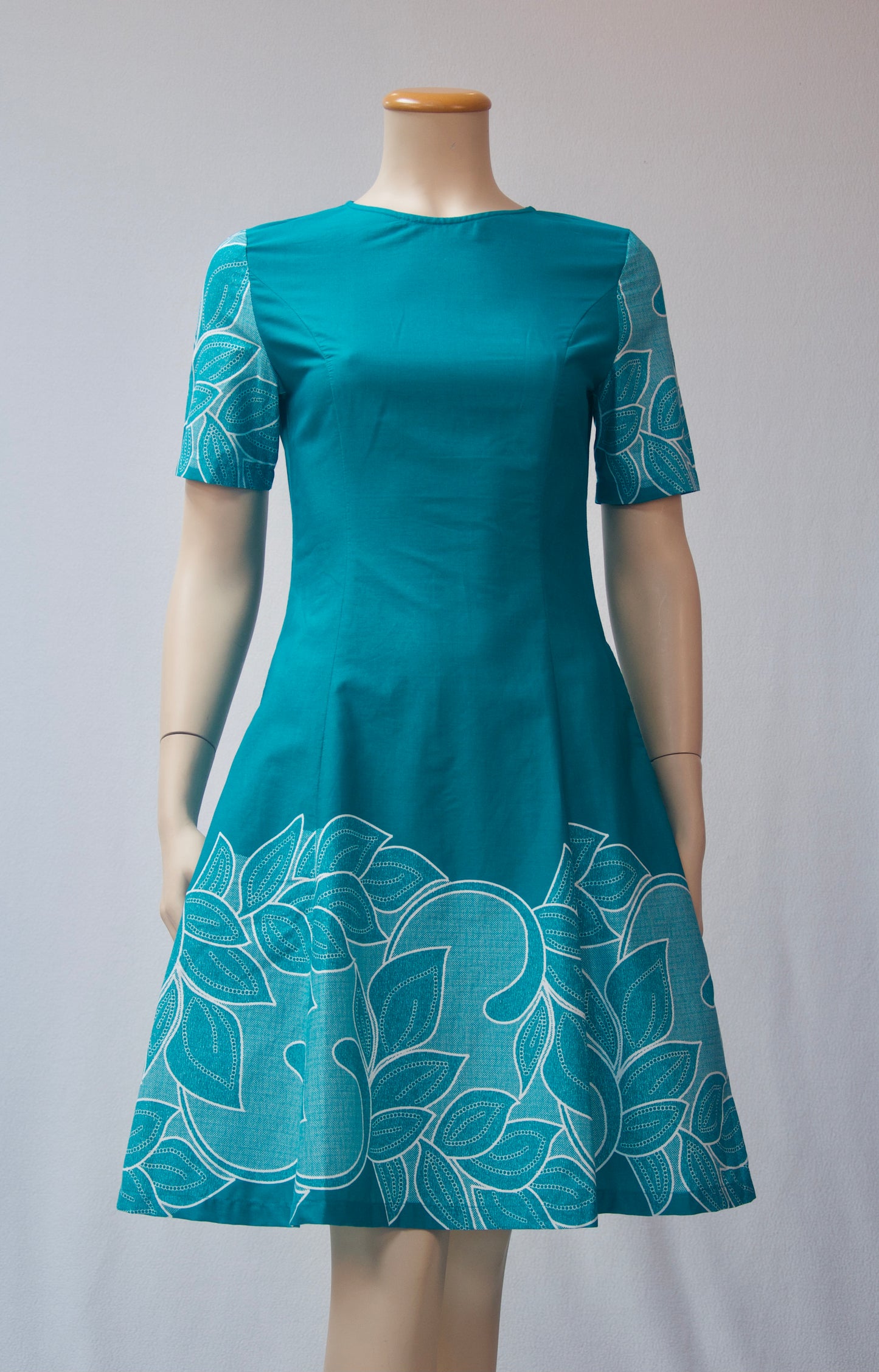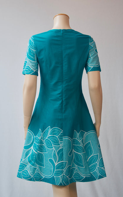 Teal Leaf Printed Cotton Dress - XS is backordered and will ship as soon as it is back in stock.