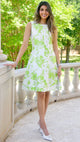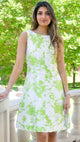 White and Green Floral Print Sleeveless Princess Seam Dress - XS is backordered and will ship as soon as it is back in stock.