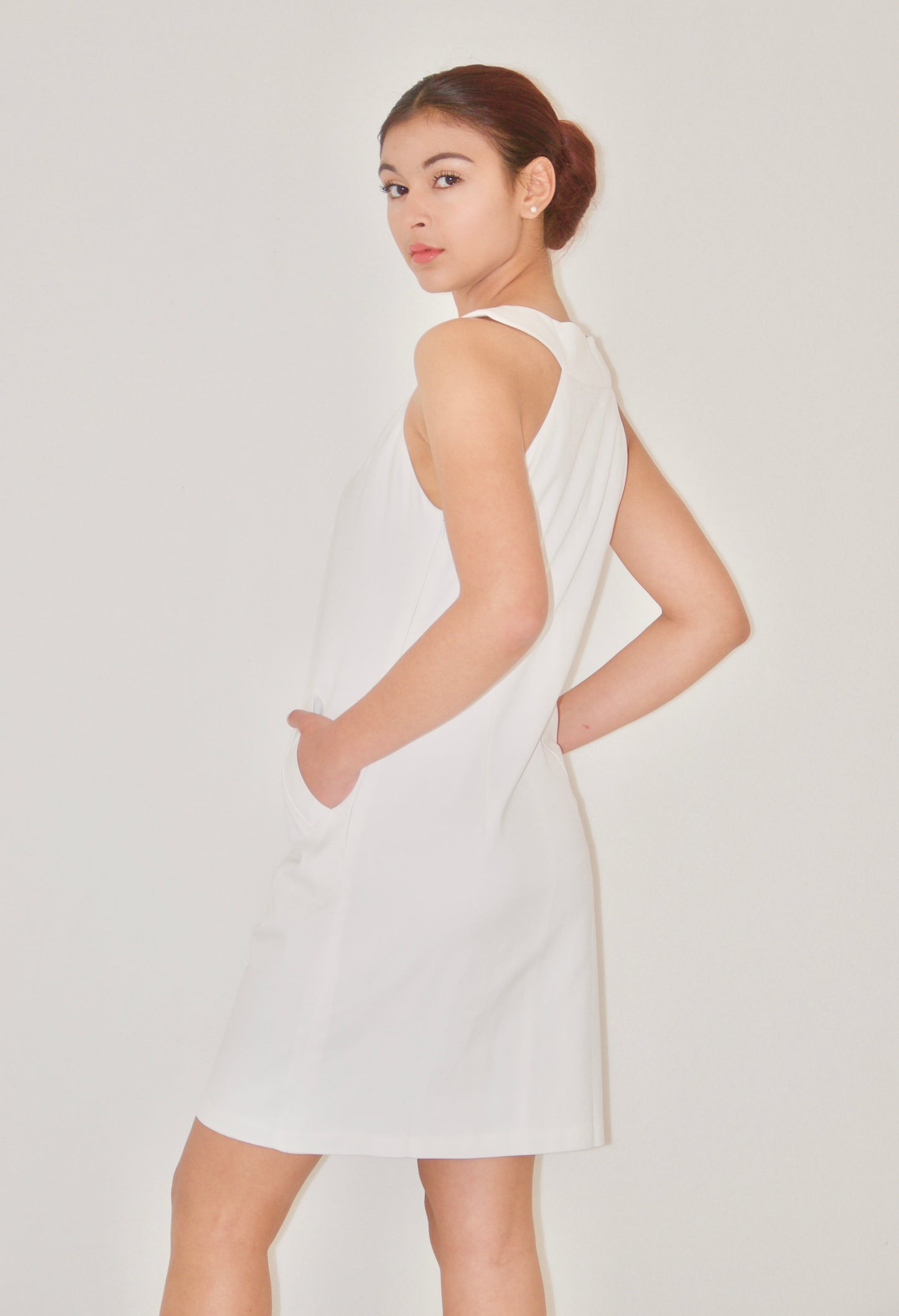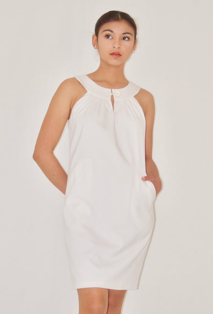 White Cotton Sleeveless Yoke Mini Dress - XS is backordered and will ship as soon as it is back in stock.