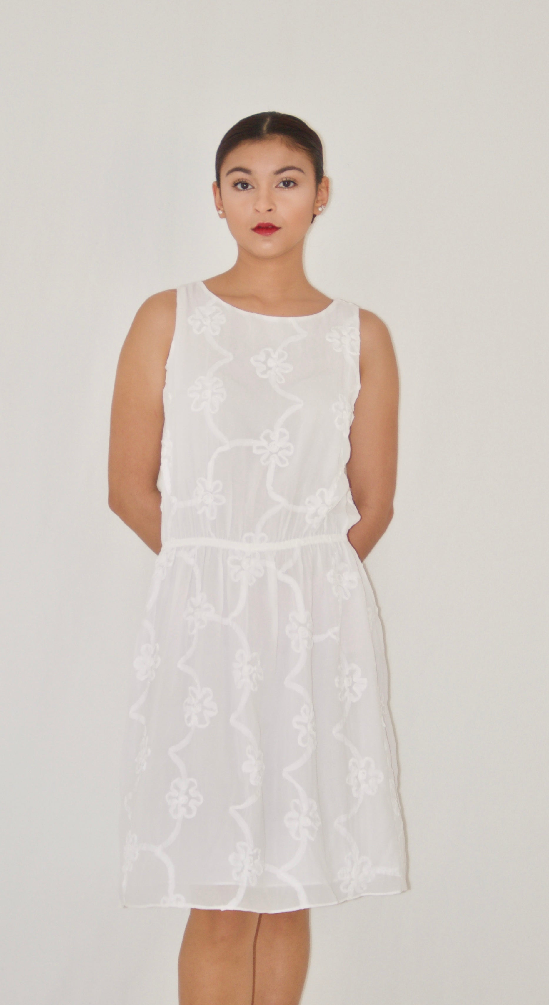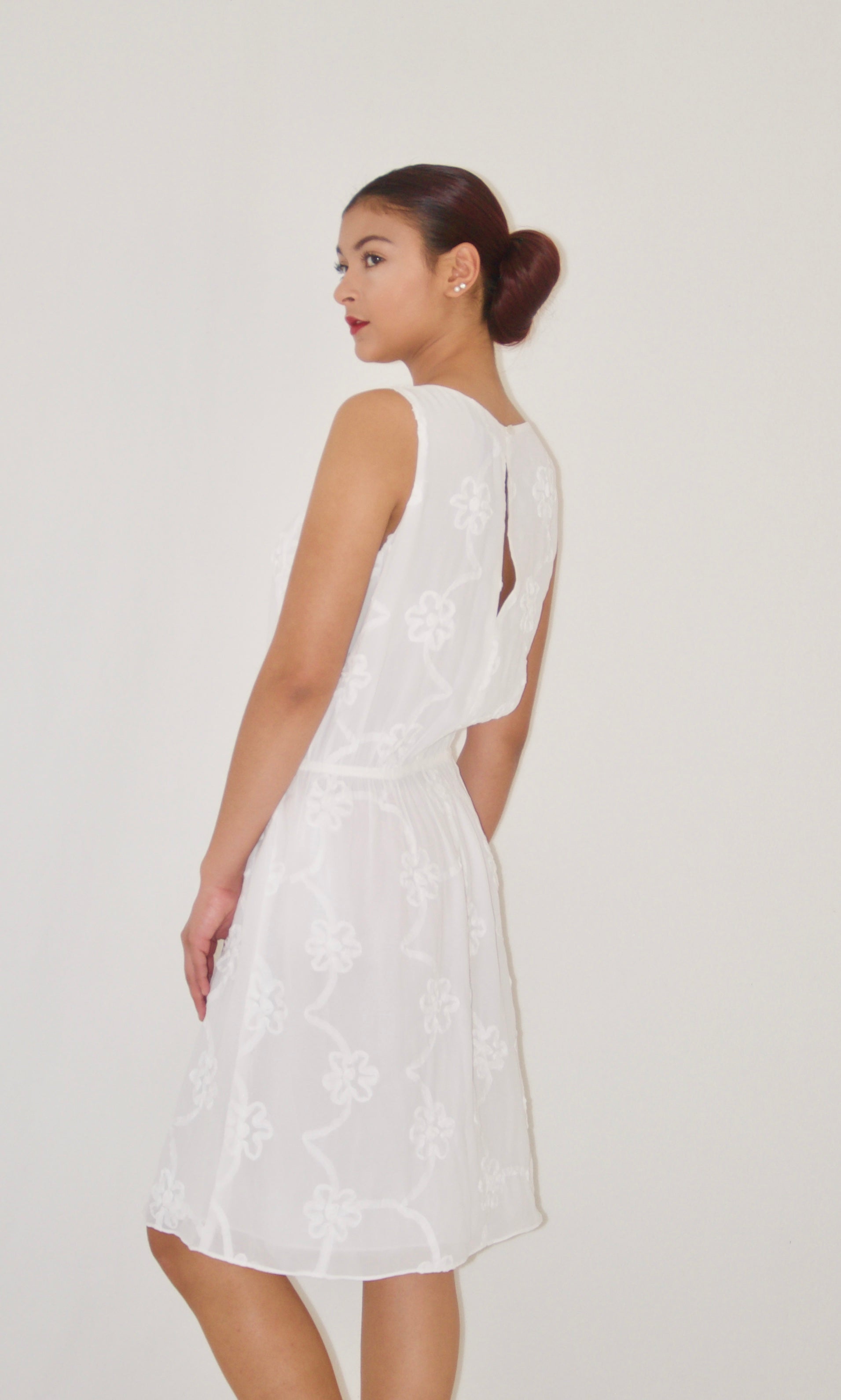 White Floral Detailed Chiffon Midi Dress - XS is backordered and will ship as soon as it is back in stock.
