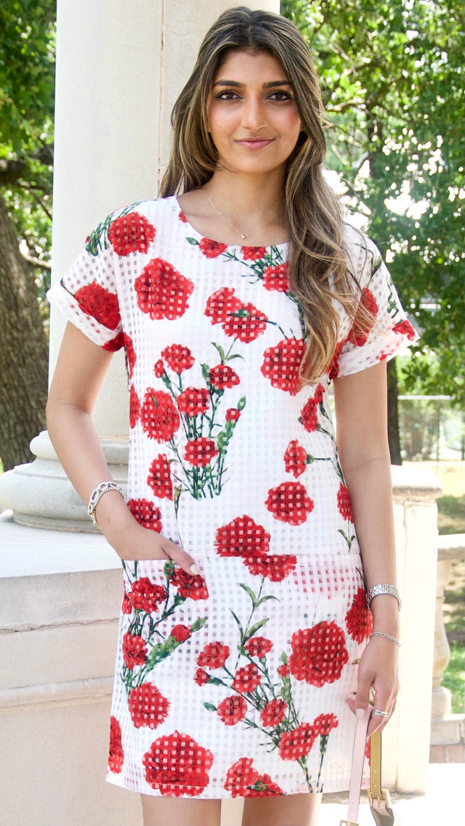 White Rose Print Short Sleeve Mini Dress
