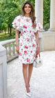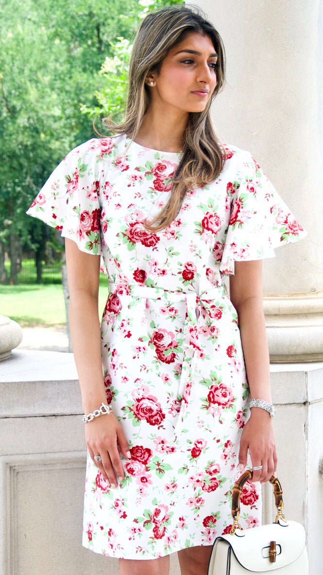 White Rose Print Tie-Belt Dress - XS is backordered and will ship as soon as it is back in stock.